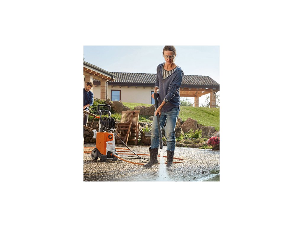 Výkonný a robustní STIHL RE 130 PLUS je špičkový model v kompaktních čisticích zařízeních, který je schopen vyvinout tlak až 135 barů. Vhodný pro úklidové práce kolem domu a zahrady, ideální pro efektivní čištění větších vozidel, teras nebo fasád. Pomocí nastavitelné ploché trysky může být tlak plynule nastaven tak, aby odpovídal příslušnému povrchu. Rotační tryska očistí i extra houževnaté nečistoty. Vysokotlaká hadice, vyztužená ocelovou pleteninou. Je vhodná pro intenzivnější nasazení v náročnějších podmínkách. Součástí standartní výbavy je i navíjecí buben pro bezpečné uložení hadice. V náročnějších podmínkách oceníte zvýšenou mobilitu díky velkým kolům podvozku.