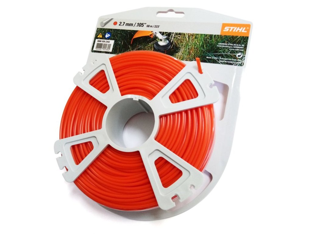 Žací struna s kulatým profilem o průměru 2,7 mm a návinem 68 m pro benzínové křovinořezy.