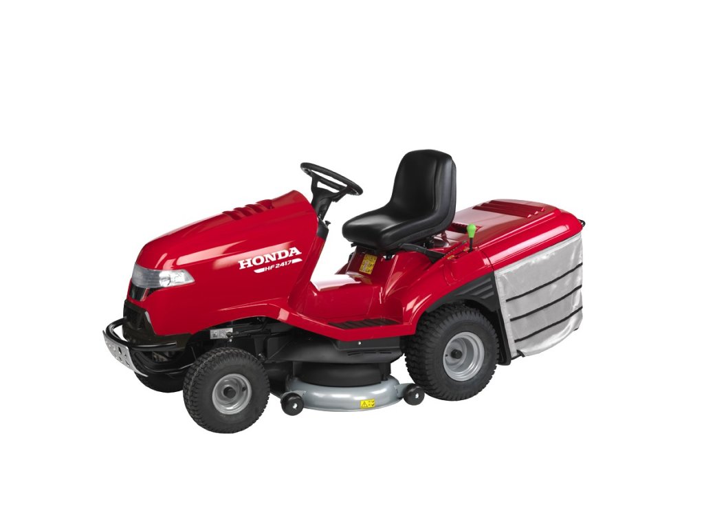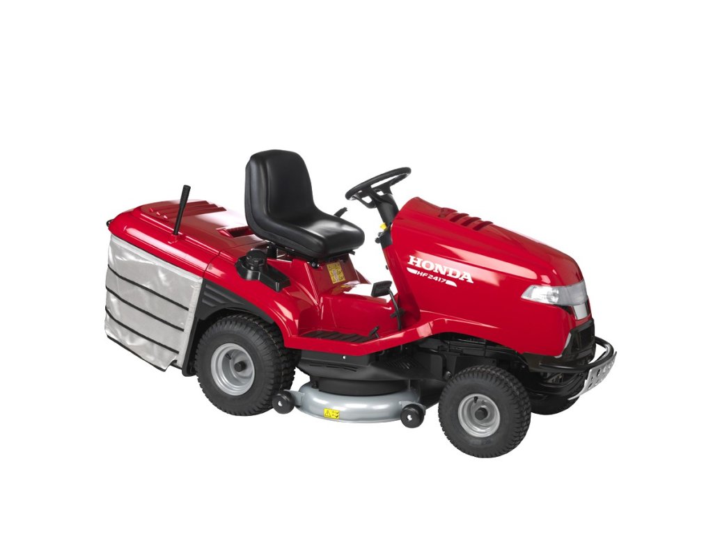 Honda HF 2417 HM: nejoblíbenější model v nabídce zahradních traktorů třídy "Premium" s plynule proměnným hydrostatickým pojezdem, otevřenou žací komorou s podpůrnými ventilátory, silným dvouválcovým motorem a VersamowTM - integrovaným mulčovacím systémem.