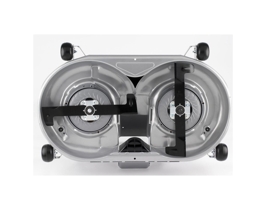 Pro žací ústrojí o šíři záběru 102 cm a více se u mezinápravových sekacích zařízení u traktorů Honda používá výhradně synchronizované uspořádání dvou žacích nožů. Tak aby nože vzájemně pokryly celkový záběr, je nutné, aby jejich délka v součtu byla větší než záběr. Díky překrývání rotačních výsečí je zaručeno perfektní pokrytí celé travní plochy bez možnosti vynechání neposekaných míst. Jak ovšem zajistit, aby se při vzájemném otáčení v jedné rovině nedostaly do vzájemního kontaktu? Spolehlivé a bezpečné časování rotace jednotlivých nožů o 90° vůči sobě je zajištěno ozubeným řemenem. Nehrozí tak nebezpečí kolize sekacích nožů a případná destrukce. Navíc je mnohem lépe optimalizován průtok vzduchu do sběrného boxu a lepší sběrací schopnost traktoru.