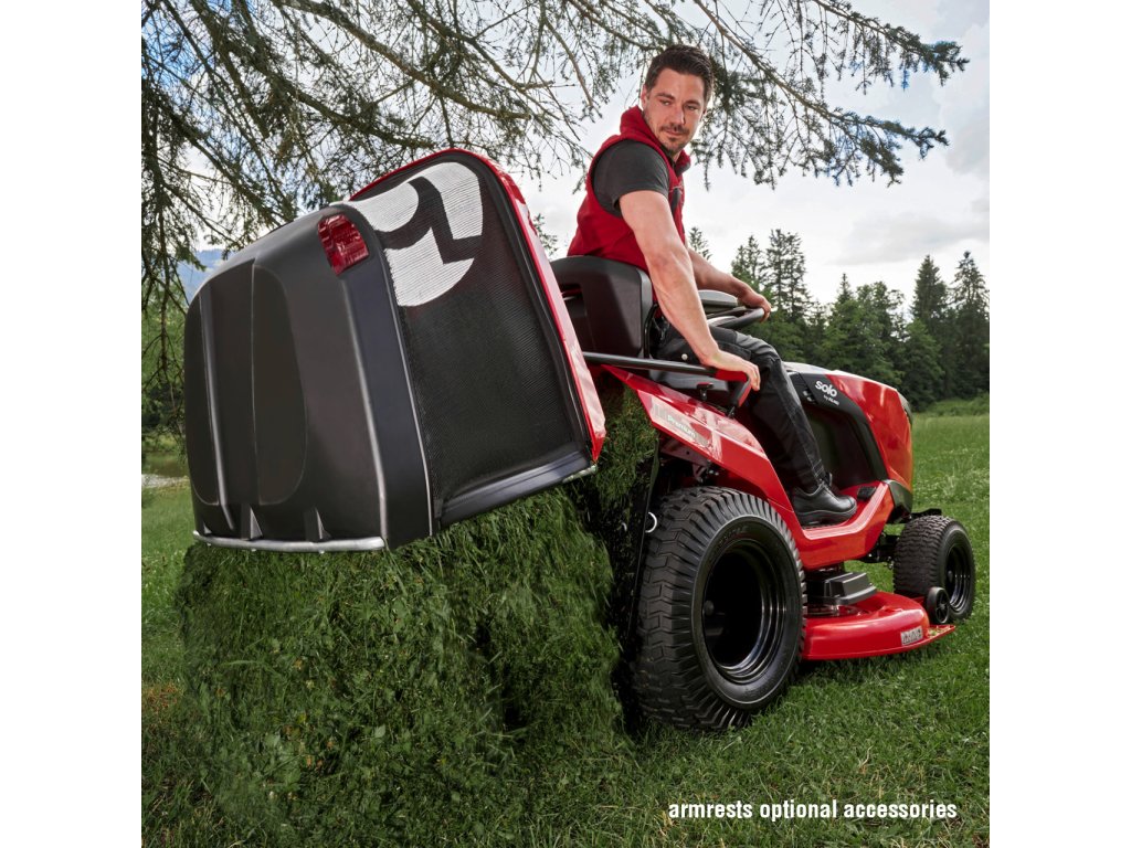 Komfort a efektivitu zvyšuje i vestavěný tempomat. Pedály vpřed a vzad vedle sebe pro intuitivní řízení. Sekačka se snadno doplňuje díky vnějšímu hrdlu nádrže. Hluboký povrch běhounu a vysoký prostor pro nohy usnadňují nastupování a práci s naším zahradním traktorem. Pohodlné sedadlo lze individuálně nastavit postupně. Nyní nové s područkami.