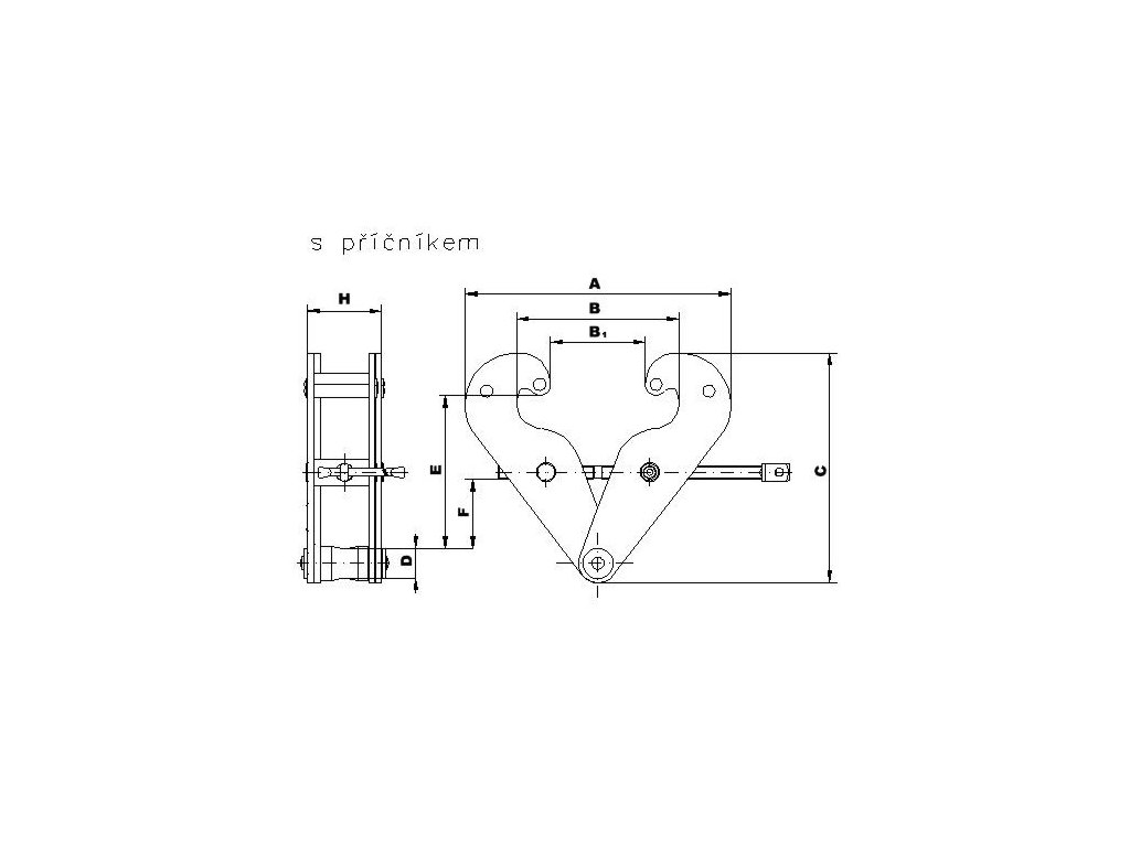 - slouží pro snadné a rychlé zavěšení ručních zdvihadel na nosníky nebo sloupy profilu tvaru I (I, IPE, HEB, HEA) nebo T.