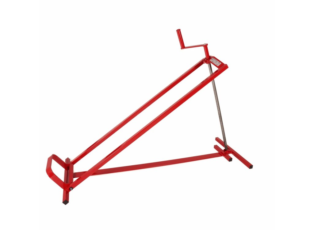 Zadními koly traktoru najedete na rám zvedáku a otáčením závitové tyče naklopíte traktor do požadované polohy na bok v úhlu cca 40°. Spodní kolo traktoru je po celou dobu bezpečně ukotveno ke zvedáku pomocí bezpečnostního popruhu. Zatížení zvedáku až 400 kg.